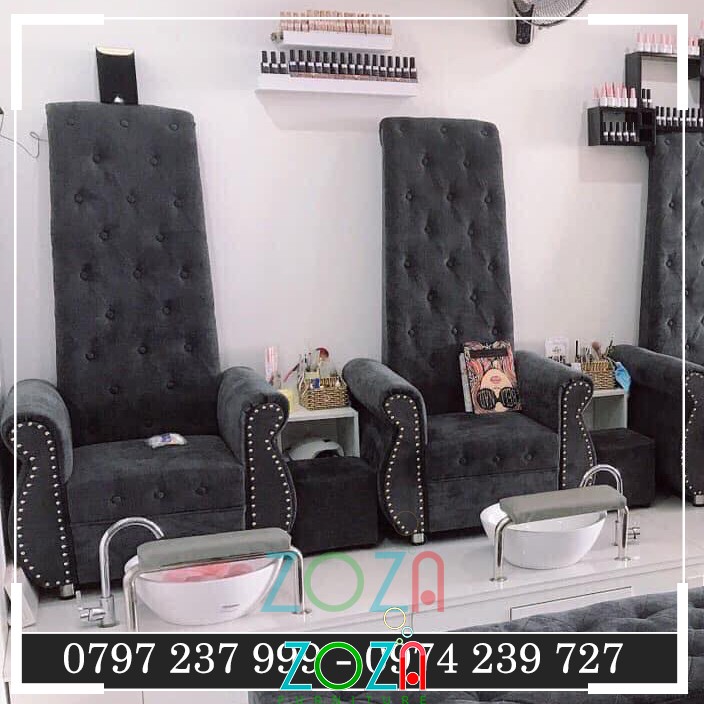 Trọn bộ 2 ghế nail cổ điển màu xám đẹp lung linh cho tiệm nail